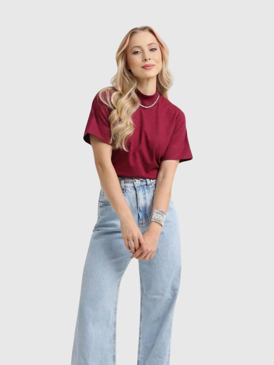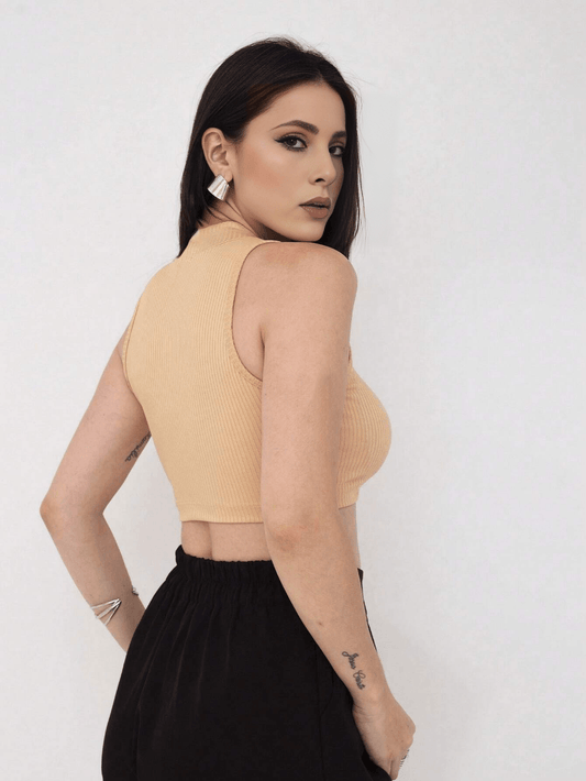 Tecido excelente e a modelagem se ajusta muito bem ao corpo. A canelada é estilosa e combina com tudo!